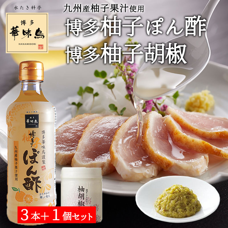 博多華味鳥 博多柚子ぽん酢 360ml 3本 柚胡椒 30g 1個 4点セット トリゼンフーズ 水炊き 鍋 ポン酢 九州産 柚子胡椒