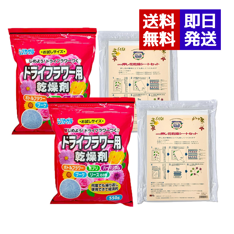ドライフラワー用乾燥剤シリカゲル 550g + 押し花乾燥シートセット 各2個セット ドライフラワー 押し花 しおり 生花