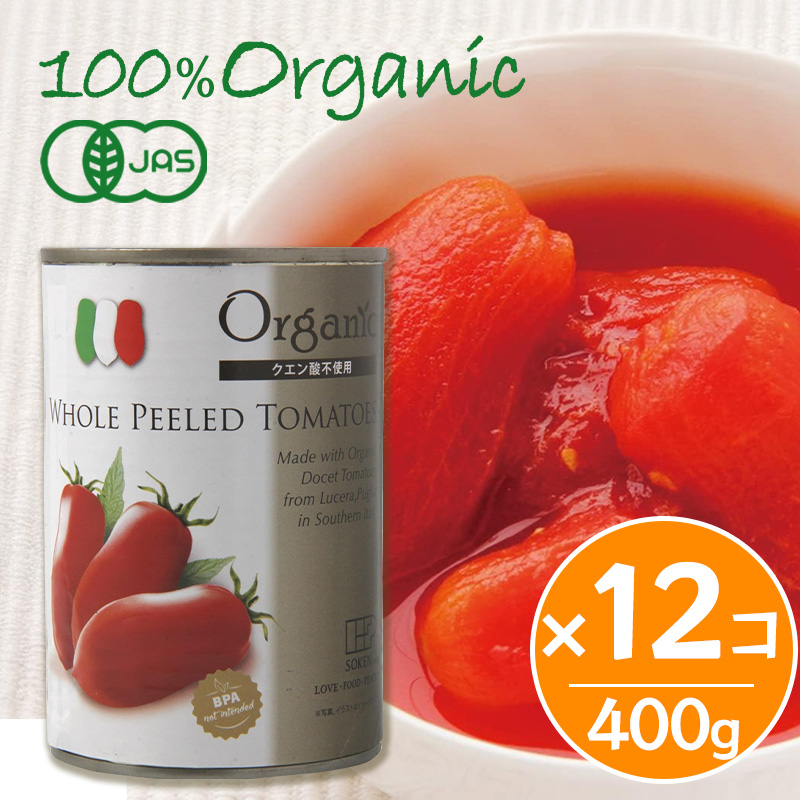 創健社 有機ホールトマト缶 400g 12個セット ホールトマト缶 オーガニック トマト缶 bpaフリー 有機トマト トマトソース