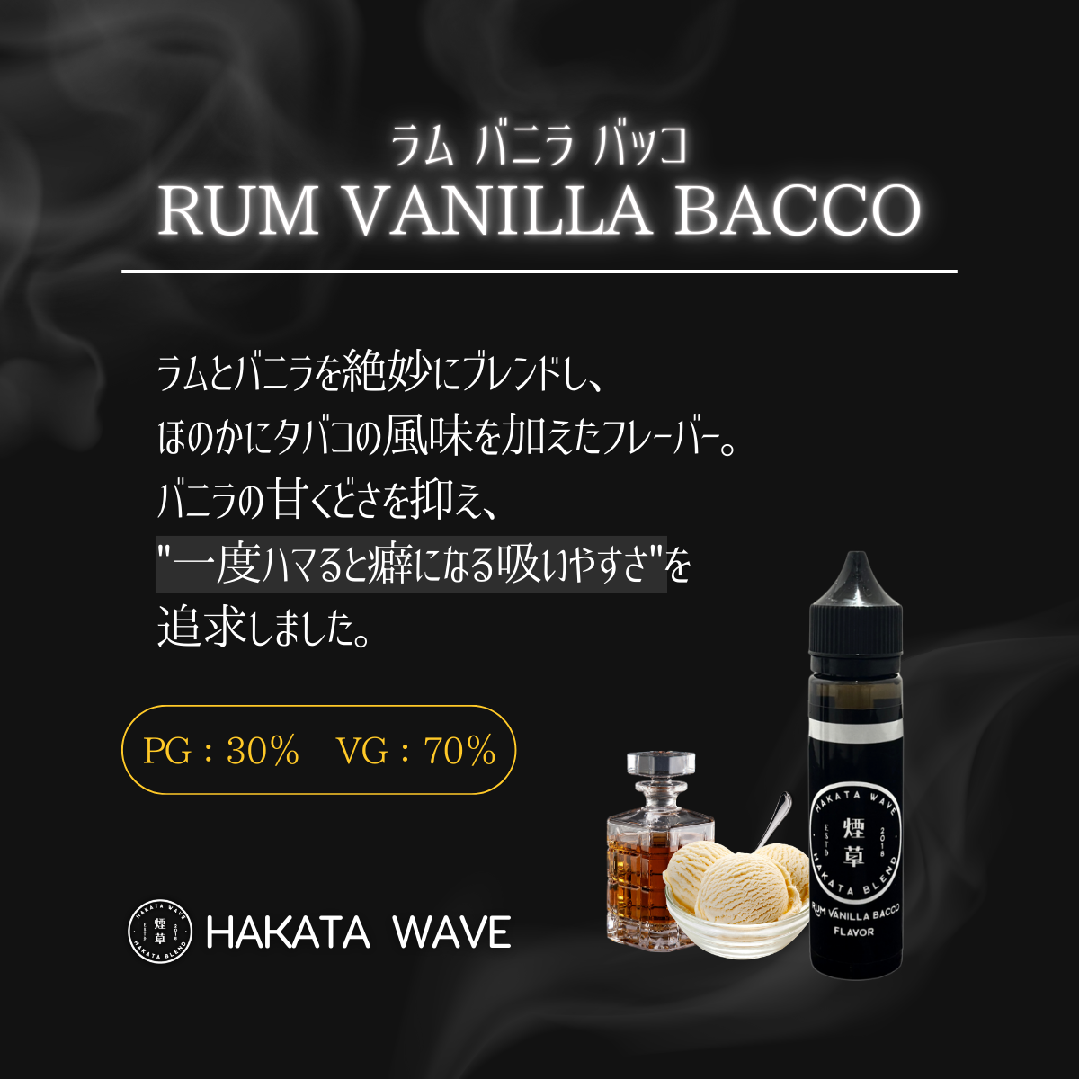 電子タバコ リキッド vape 国産 ニコチン0 HAKATA WAVE - RUM VANILLA BACCO 60ml E-LIQUID
