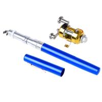 【並行輸入品】ペン型 フィッシングロッド 携帯釣竿 リールセット ブルー伸縮 ポケット 釣り竿 _