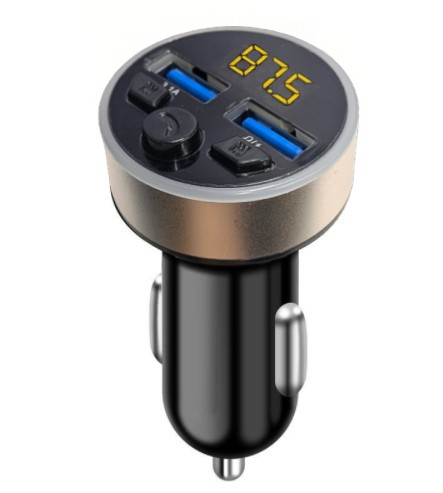 【並行輸入品】FMトランスミッター Bluetooth5.0 USB2ポート カーチャージャー ゴールド 音楽 電圧計 シガーソケット スマホ 急速充電 _