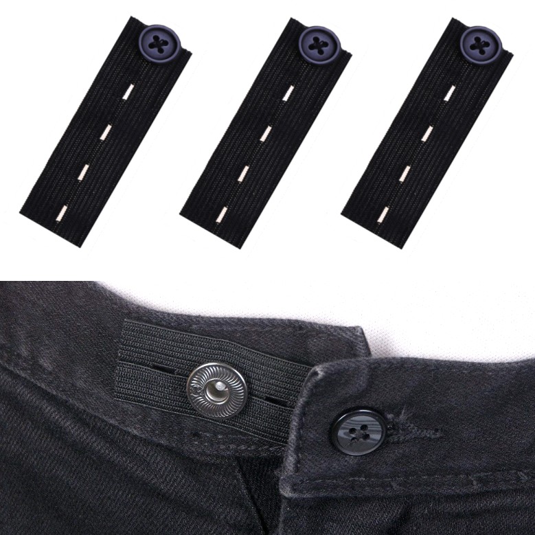 【並行輸入品】ウエスト調整 アジャスター バンド ブラック 3枚セット ズボン 広げる ボタン ウエスト伸ばす ウエスト伸ばし _