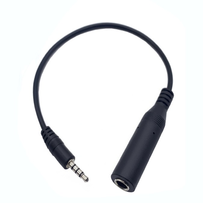 6.35mmステレオ標準ジャックを4極3.5mmステレオミニプラグに変換するケーブルです。