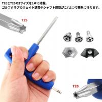 T20とT25の2サイズを1本に搭載。ゴルフクラブのウェイト調整やシャフト調整がこれ1つで簡単に行えます。