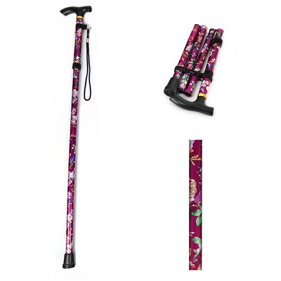 【並行輸入品】花柄 折りたたみステッキ パープル 伸縮折りたたみ式杖 伸縮杖 高齢者歩行補助 軽量つえ 敬老の日 __