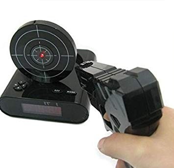 【並行輸入品】シューティング目覚まし時計 ピストル型 ガンアラームクロック ブラック ゲーム 録音機能 デジタル 置時計 置き時計 __