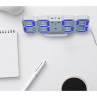 電子LED デジタル目覚まし時計 ホワイト本体+ブルーLED おしゃれ シンプル 置き時計 置時計 _.