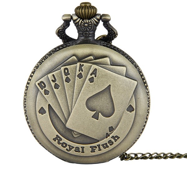 【並行輸入品】トランプデザイン アンティーク風 懐中時計 チェーン付き おしゃれ メンズ レディース _.