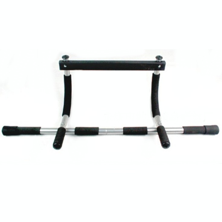 ドアの上の桟にひっかけるだけで懸垂トレーニングができます。