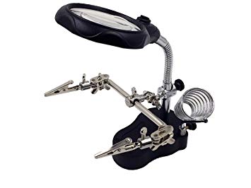 【並行輸入品】はんだごて台&ルーペクリップスタンド 精密作業用 2LEDライト付き スタンドルーペ __