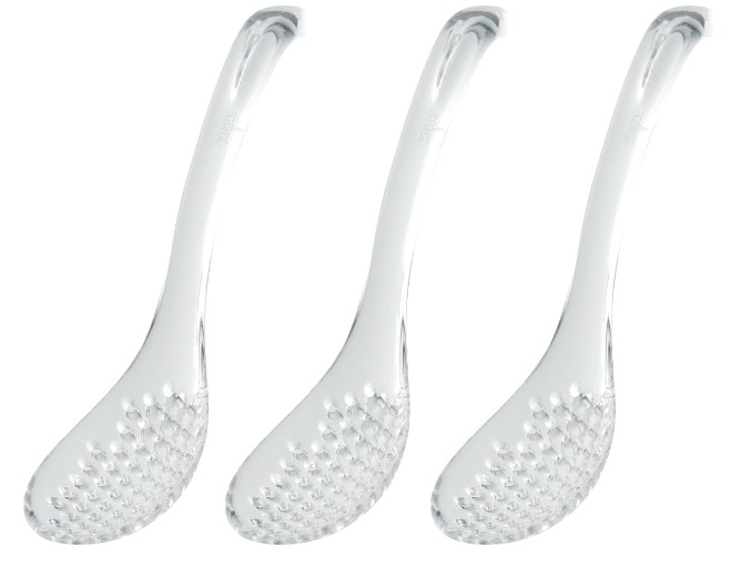しずくの様に透き通った、プラスチック製の丈夫なレンゲです。