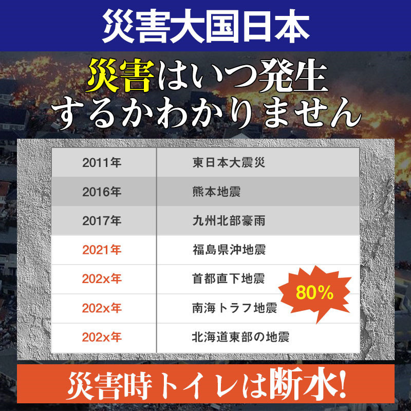災害時 緊急時 被災時 非常時 防災時 渋滞時 断水時 キャンプ