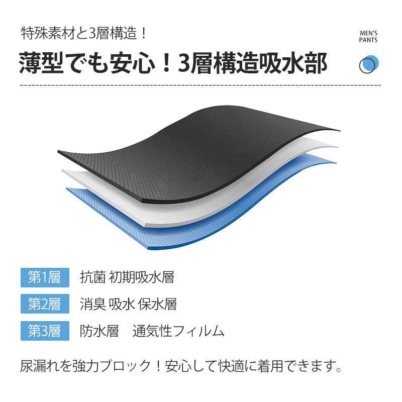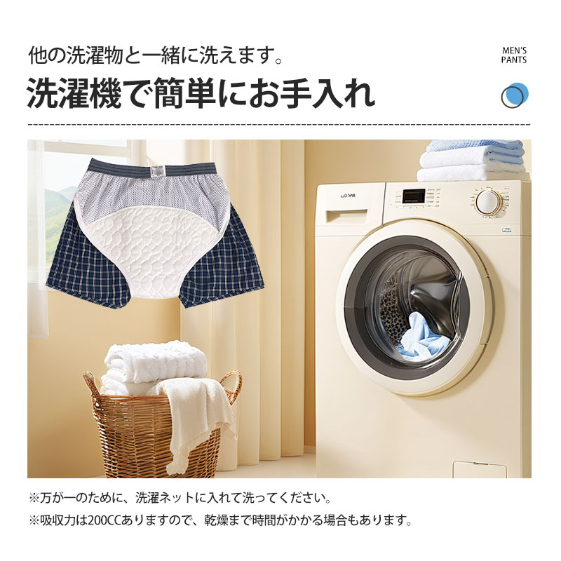 尿漏れパンツ 男性 メンズ 200cc 失禁パンツ 【2点ご購入で500円OFF】 前後吸収帯 吸水パンツ 軽失禁パンツ ボクサーパンツ 消臭 抗菌 速乾 対策