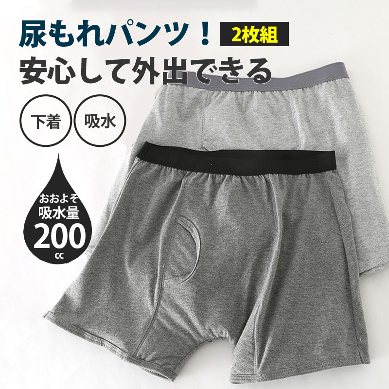 尿漏れパンツ 男性 メンズ 200cc 失禁パンツ ちょいもれパンツ 2枚セット 吸水 吸水パンツ 男性用 軽失禁パンツ 下着 ボクサーパンツ 消臭 抗菌 速乾