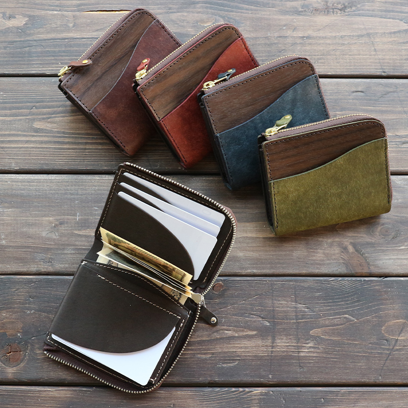 【家具のように育つ。薄型を極め、軽量コンパクトなのに大容量。天然木と革の財布】