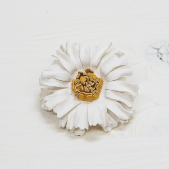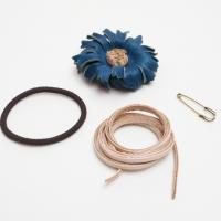 カラーレザーのコサージュです。ヌメ革ならではの洗い加工で、動きのある立体感を1つ1つだしています。裏面にはスナップ付きのループがあり、3つのオプションを簡単に入れ替えることができます。(コサージュ1個に付き、革ひも、ヘアゴム、ショールピン、3つのオプションが標準で付属となっています)色数も沢山あり、シンプルデザインなので、相性を選びません。VARCO一押しの人気アイテムです!