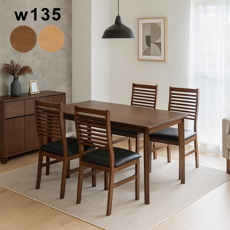 キーワード:ダイニングセット 座卓テーブルセット 5点セット ダイニングテーブルセット 食卓 4人 テーブル 長方形 135 木製 木目調 天然木 ハイバックチェア 合成皮革 おしゃれ 北欧 ナチュラル ブラウン シンプル モダン 新生活 おすすめ