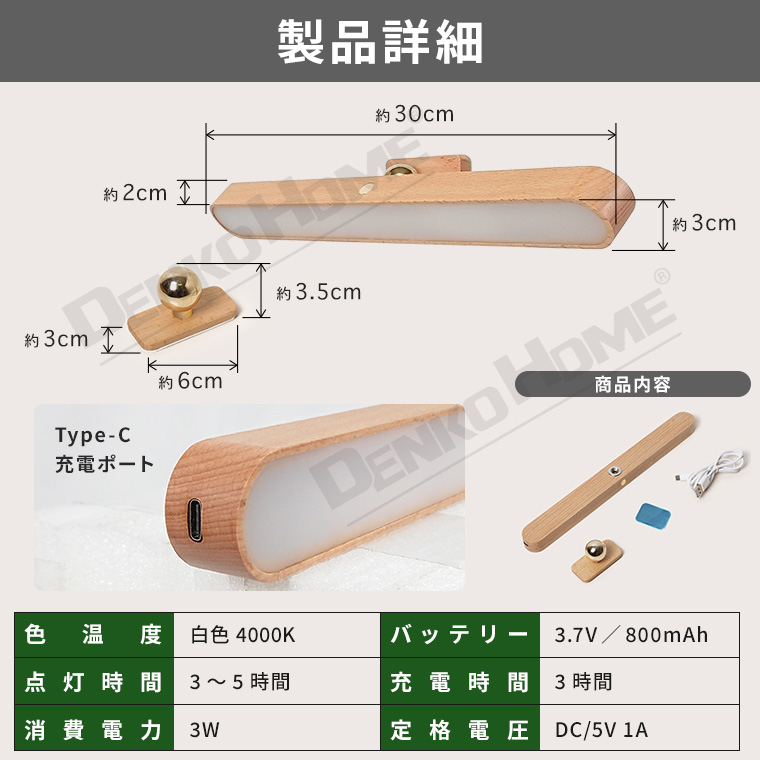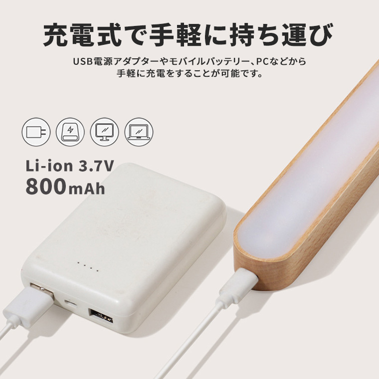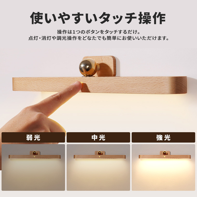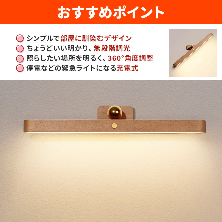 LEDライト ウォールライト 充電式 コードレス マグネット式 小さい 北欧 モダン 間接照明 木製