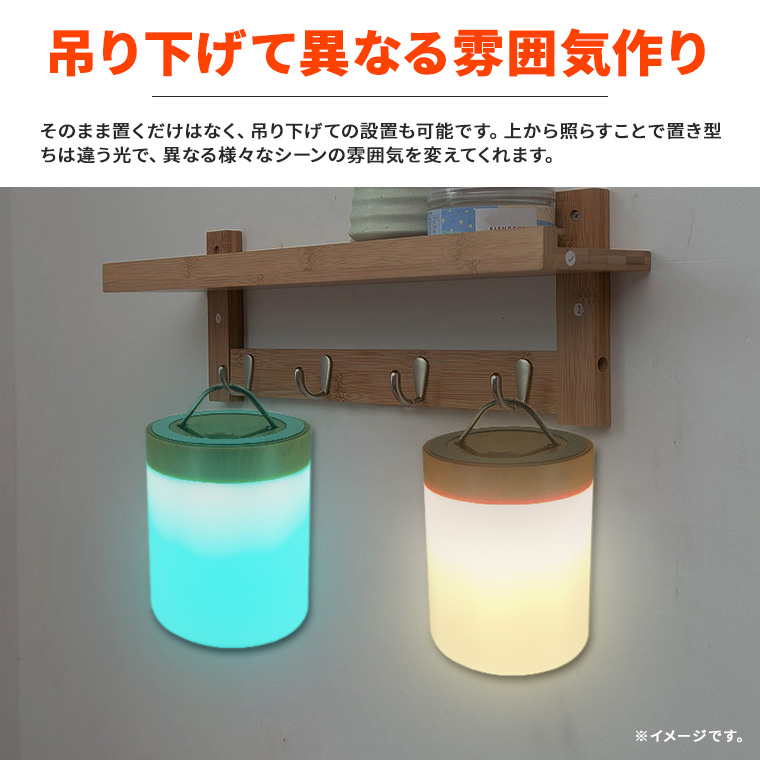 吊り下げて異なる雰囲気作りそのまま置くだけはなく、吊り下げての設置も可能です。上から照らすことで置き型ちは違う光で、異なる様々なシーンの雰囲気を変えてくれます。