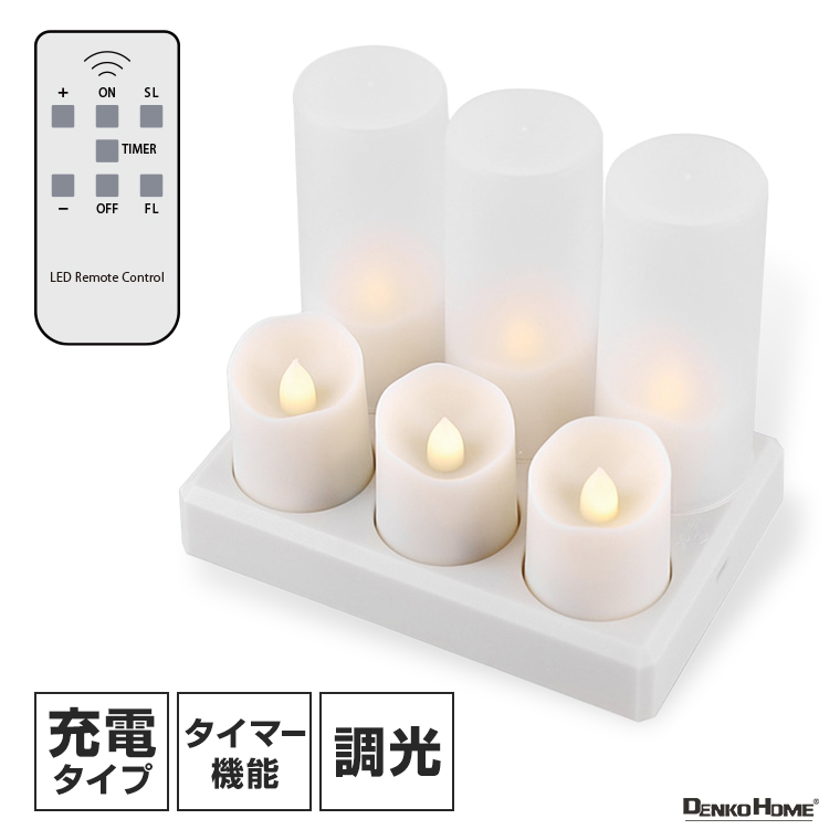 リモコンでまとめて操作複数のキャンドルを離れた場所からリモコン操作。キャンドルの電源を1つずつOFFにする面倒から解放されます。調光・タイマー設定もできる多機能モデルです。