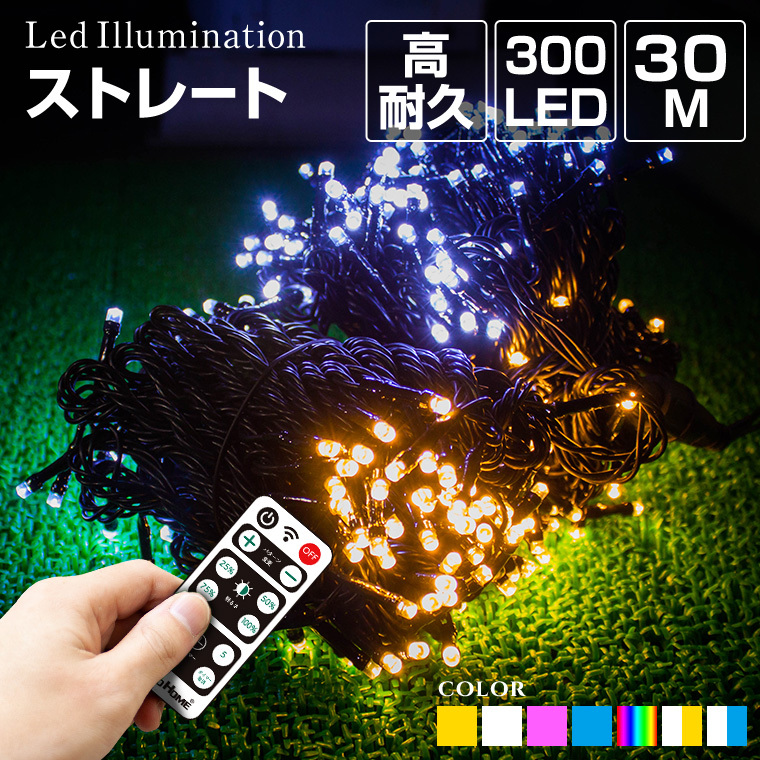 | 商品仕様 | | 品名 | イルミネーション ストレート 30m300球(kirmstr-30) | | サイズ(約) | 30m | | LED球数 | 300球(高輝度拡散LED) | | 防水等級 | IP44 | | ケーブルカラー | ブラックコード 又は クリアケーブル から選択可(高耐久ケーブル) | | LEDカラー | 全7色 | | 連結 | 1000球までを推奨 | | 電源 | コンセント(別売) | | 制御 | コントローラー(別売) | | 消費電力 | 18W | | 関連ワード | 樹木 植木 玄関 エントランス 窓 フェンス ハロウィン 業務用 結婚式 おしゃれ |