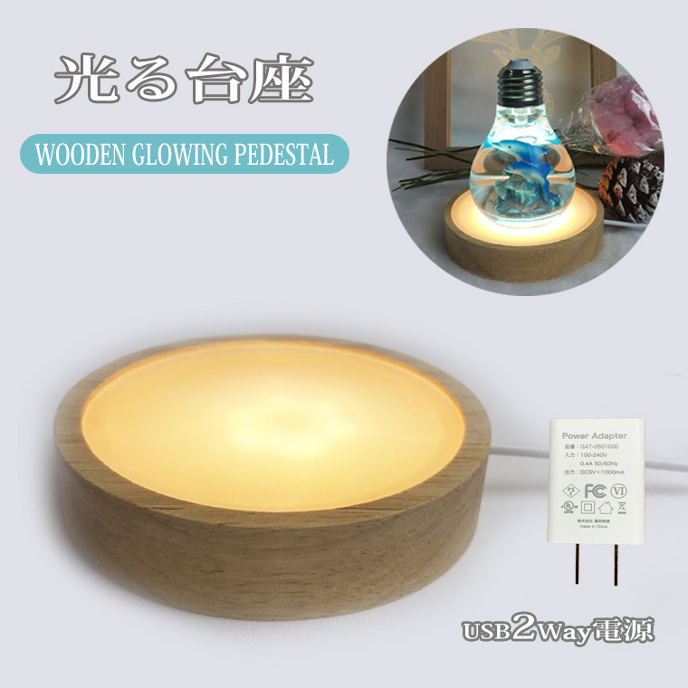 | 品名 | 光る 木製台座 LED台座 光る 台座 木製 丸型(L100mm) 電球色 (kplsq-2w) |