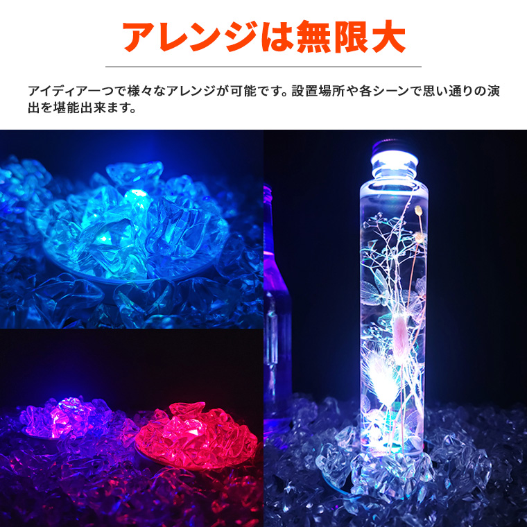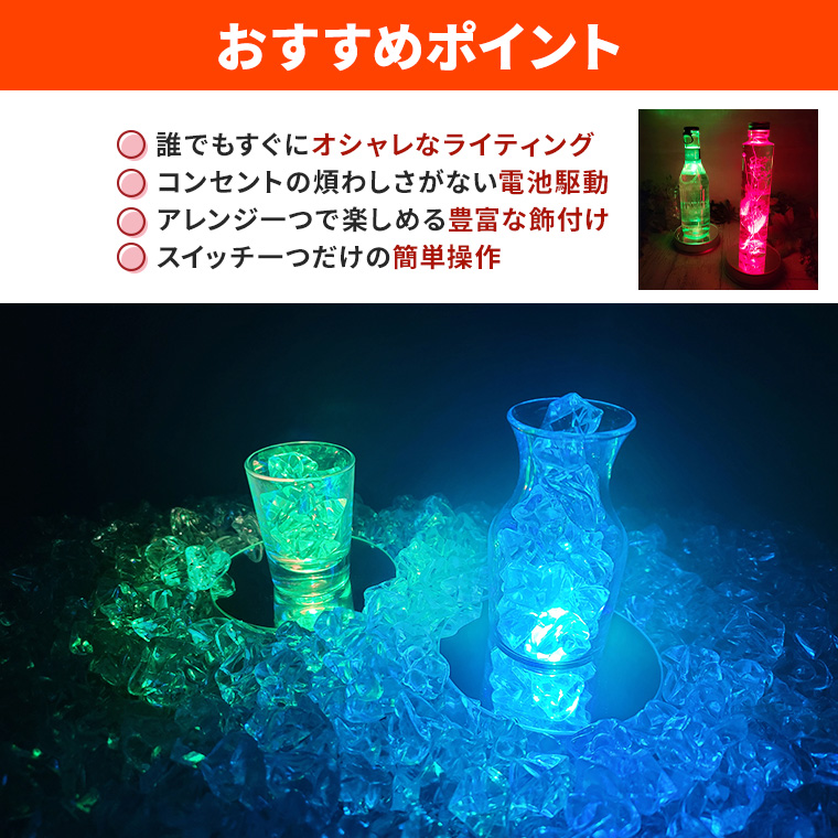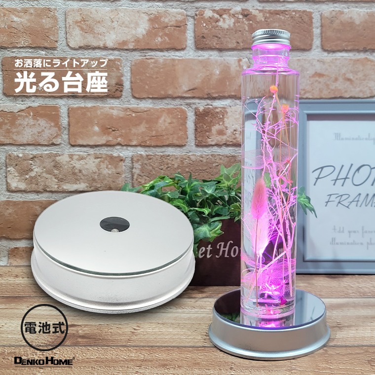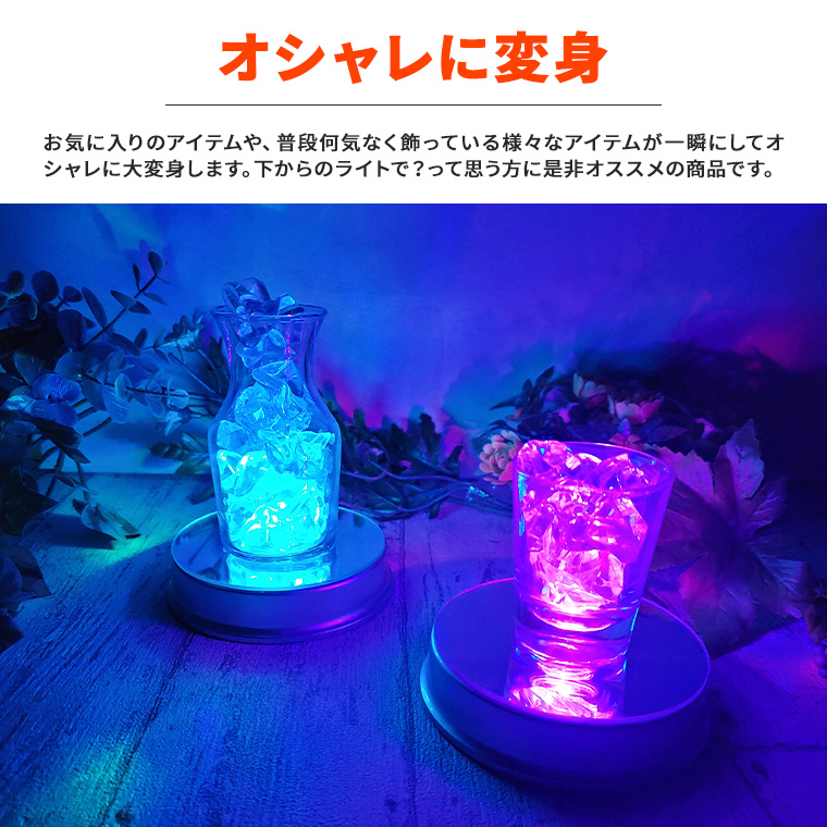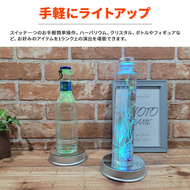 手軽にライトアップスイッチ一つのお手軽簡単操作。ハーバリウム、クリスタル、ボトルやフィギュアなど、お好みのアイテムを1ランク上の演出を堪能できます。