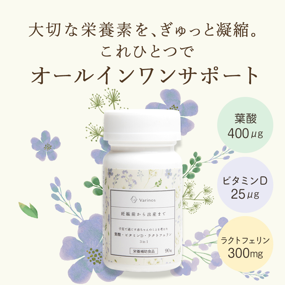 生殖医療研究のVarinosが贈る、葉酸・ビタミンD・ラクトフェリン配合のオールインワンサプリ。