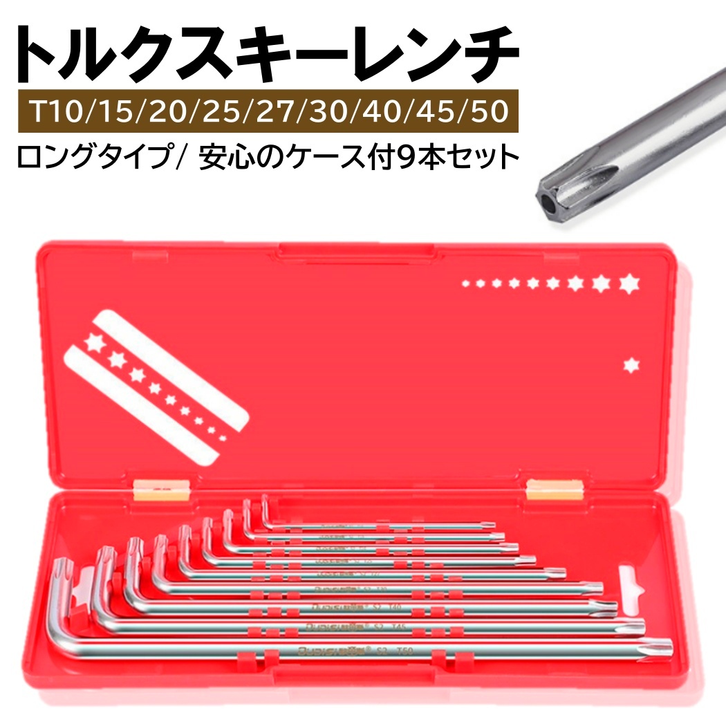 トルクスキーレンチ 9本 ロングタイプ ケース付 T50/T45/T40/T30/T27/T25/T20/T15/T10 トルクスレンチ いじり止め トルクス