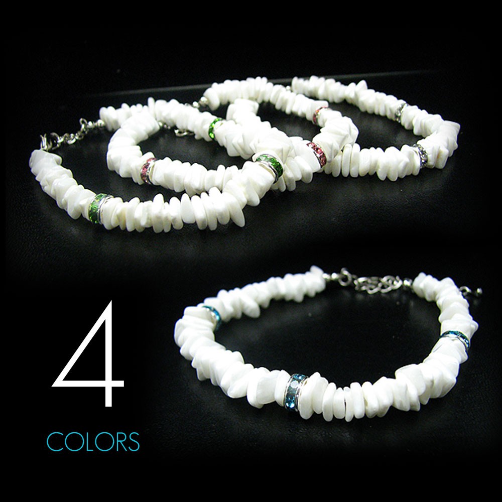 ハワイアンホワイトシェル(プカシェル) スワロフスキーロンデル(全4色) アジャスター付きアンクレット メンズ レディース 両対応