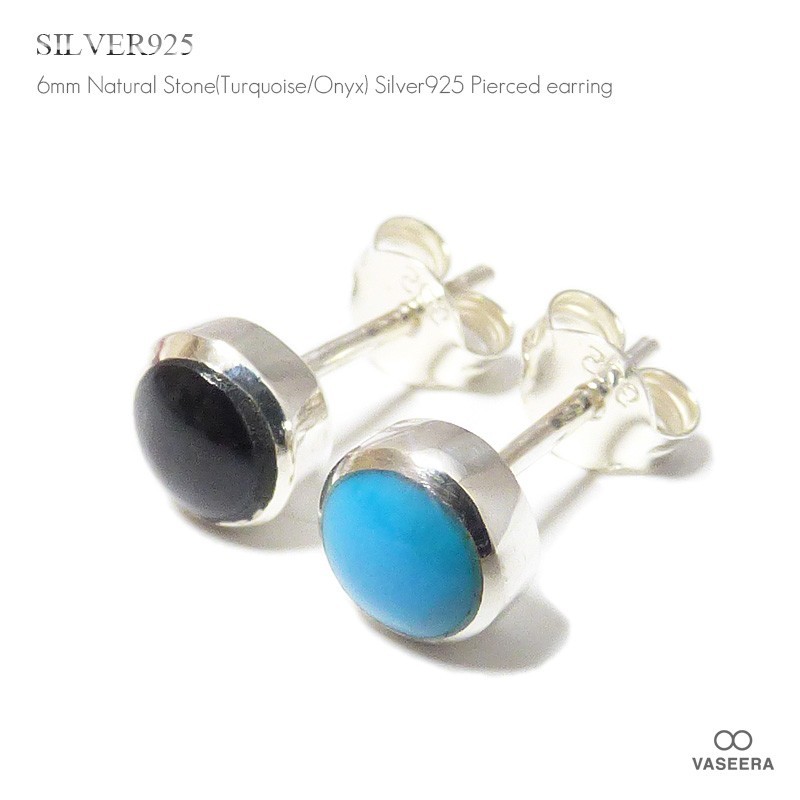 単品販売(一個) 天然石埋め込み(ターコイズ/オニキス) 6mm丸型 シルバー925 ピアス /インディアンジュエリー