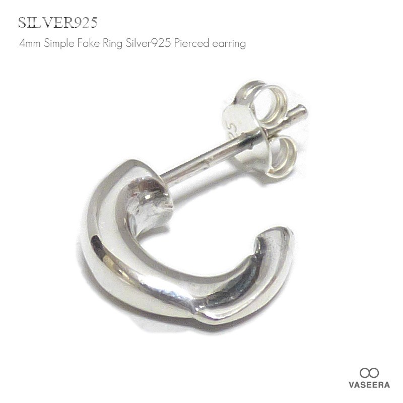 単品販売(一個) 4mm幅 シンプル鏡面甲丸ツイスト リングフープ風 シルバー925 ピアス