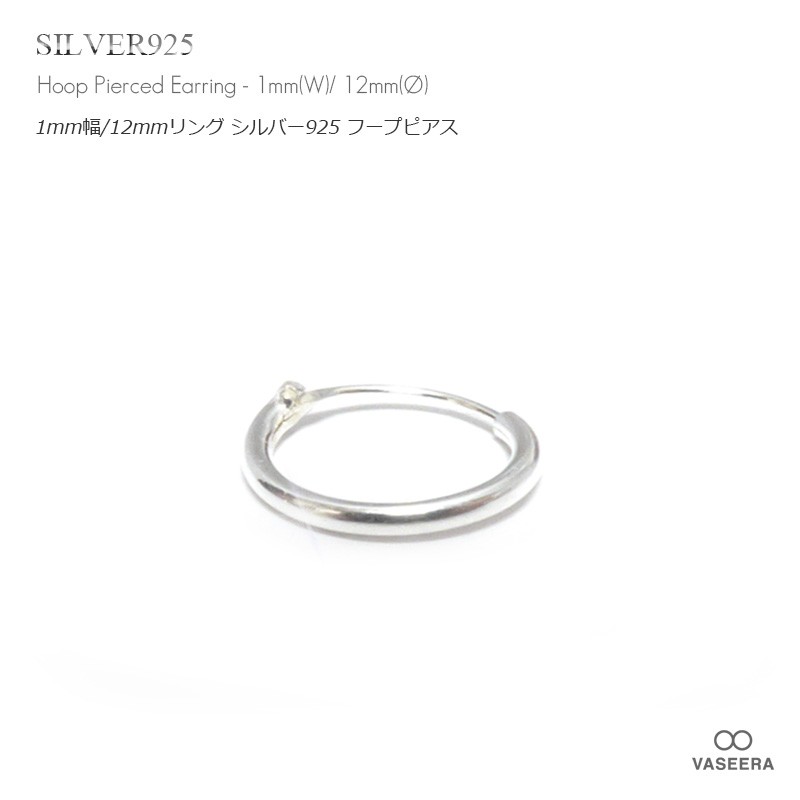 単品販売(一個) / 1mm幅(細身) 12mmシンプル プレーン シルバー925 フープピアス/リングピアス /メンズ レディース