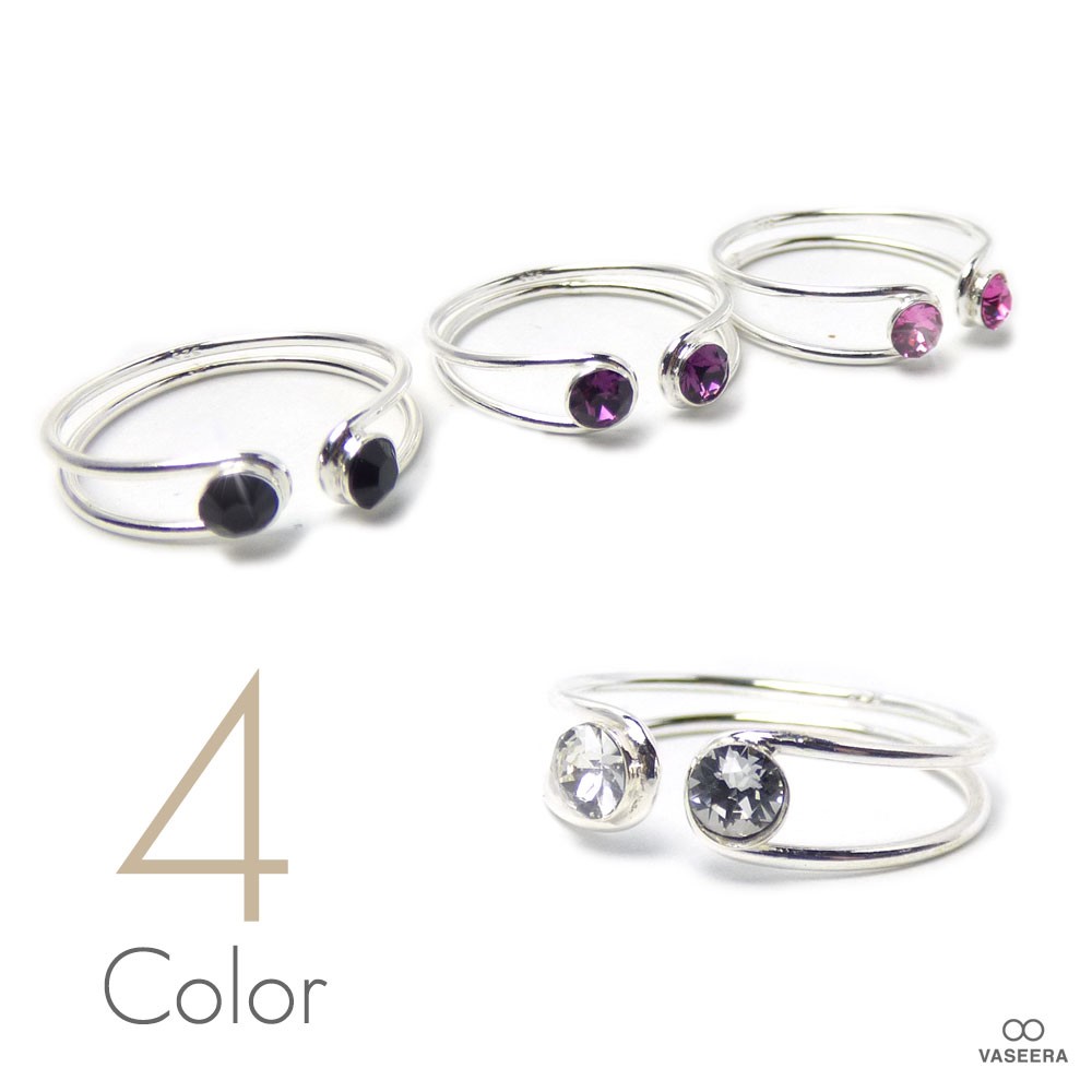 ファランジリング /トゥリング / "W"スワロフスキークリスタル フロントオープンデザイン /シルバー925/ 指輪 / ミディリング /レディース
