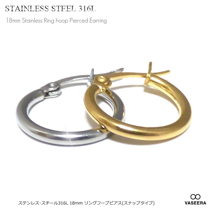 単品販売(一個) ステンレスピアス/ 2mm幅 18mmシンプルリング フープピアス(シルバー/ゴールド) スナップピアス /メンズ レディース