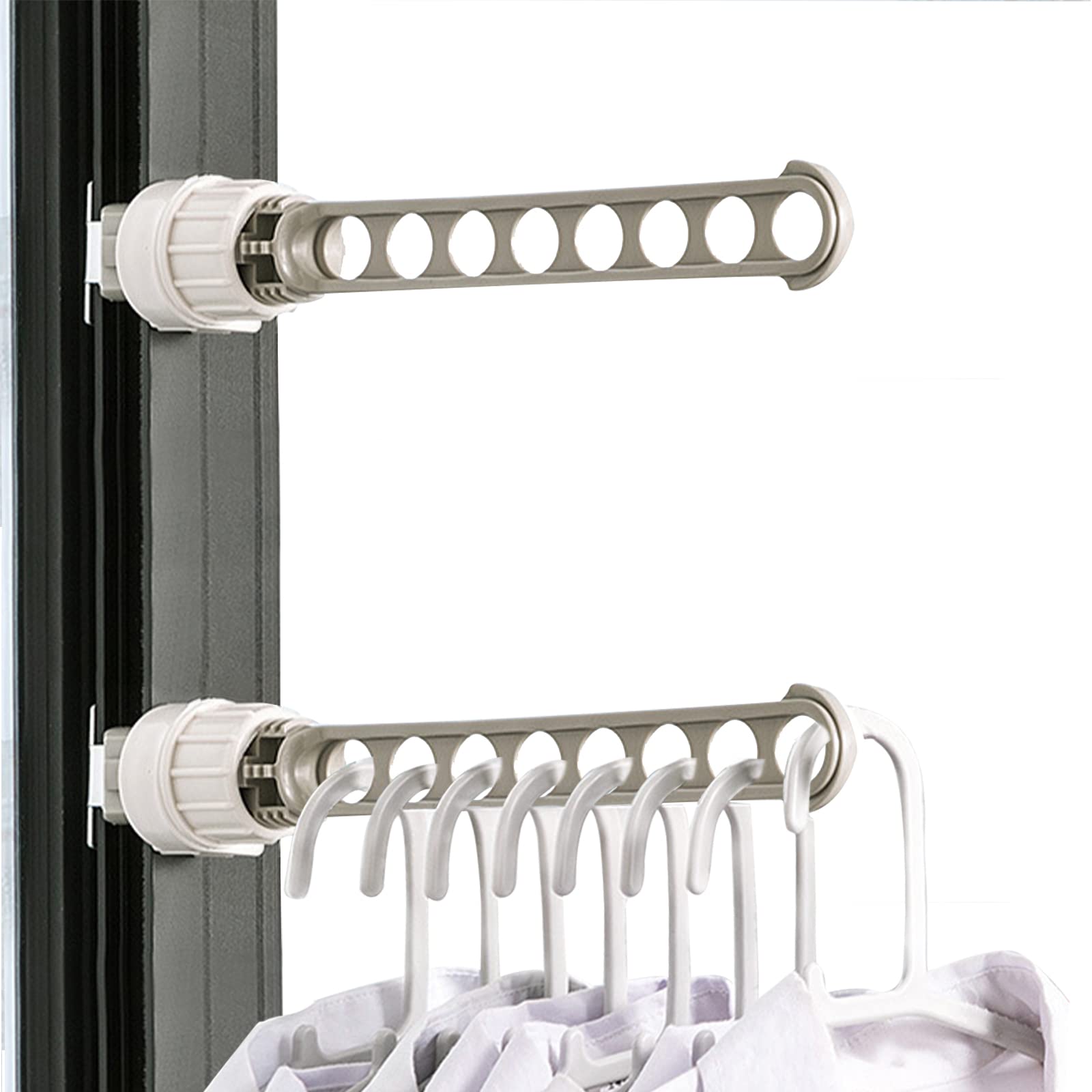 ALLMIRA プラスチック 物干しラック 2個 8ホール 洋服レール 物干しラックをぶら下げ 取り外し可能 寮のハンガー 調整可能 ポータブル ハン