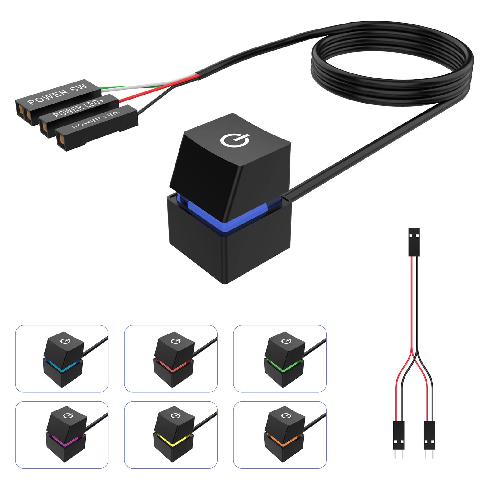 NUYSPデスクトップpcケース電源ボタン机械青軸RGB灯2メートル延長線簡単コンパクトで便利6色選択可能