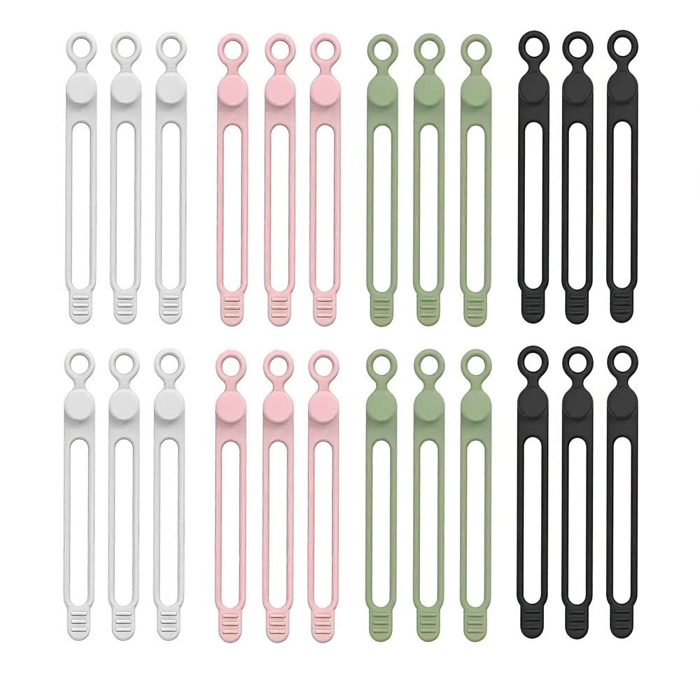 【商品仕様】ケーブルタイ24個(黒6個、グレー6個、ピンク6個、グリーン6個)。お好みに合わせて自由にお使いいただけます。シリコン製のケーブルタイをお探しならこれがおすすめです!