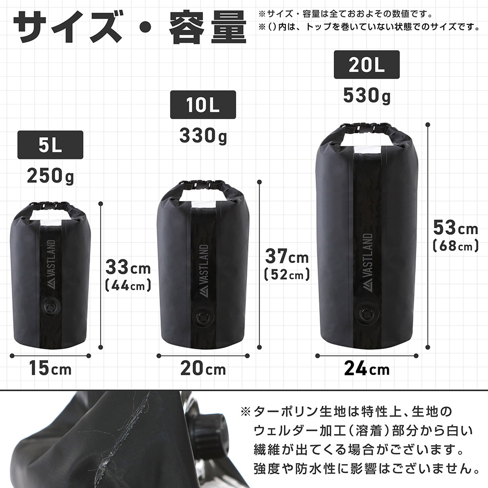 VASTLAND ドライバッグ 防水バッグ 20L IPX6 エアバルブ ショルダーベルト付き 爆買