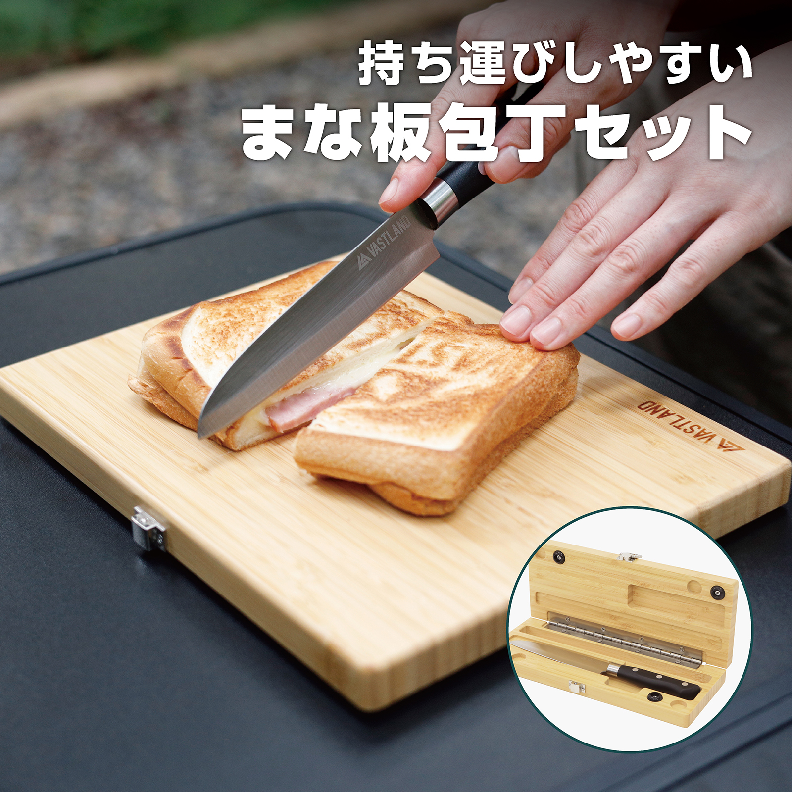 VASTLAND 包丁 まな板セット キャンプ アウトドア Mサイズ 包丁俎板 ケース付き 爆買