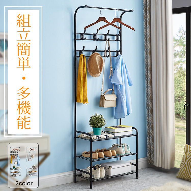 洋服掛け、帽子掛け、バッグ掛け、マフラー掛け、靴収納など様々な用途が揃えています。