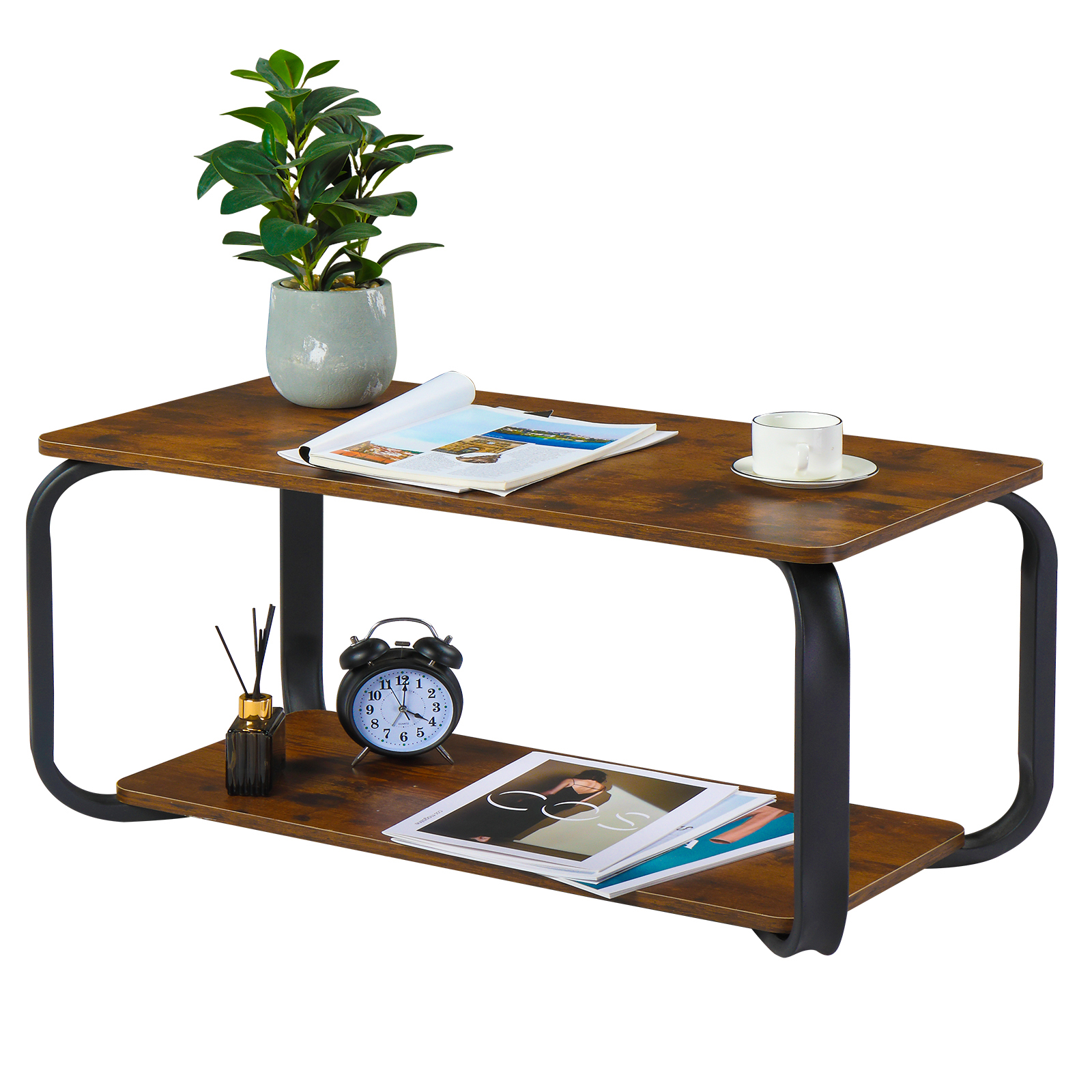 ローテーブル 収納棚付きし 幅80cm 高さ38.5cmセンターテーブル ヴィンテージ コーヒーテーブル R角保護 復古 レトロ風 ブ シンプル 木目調 TOPAIM