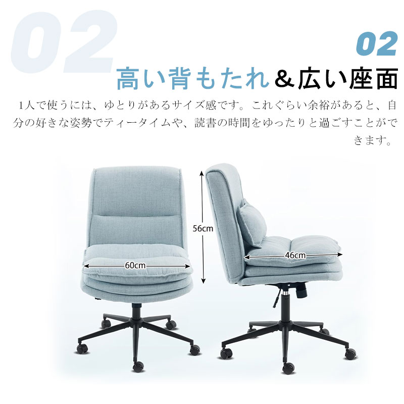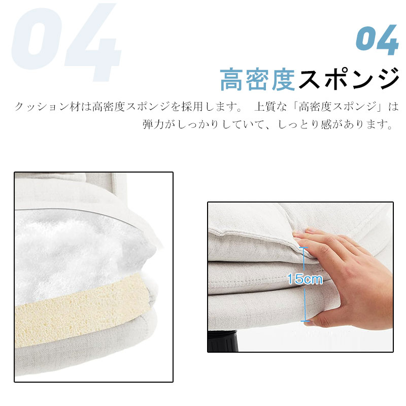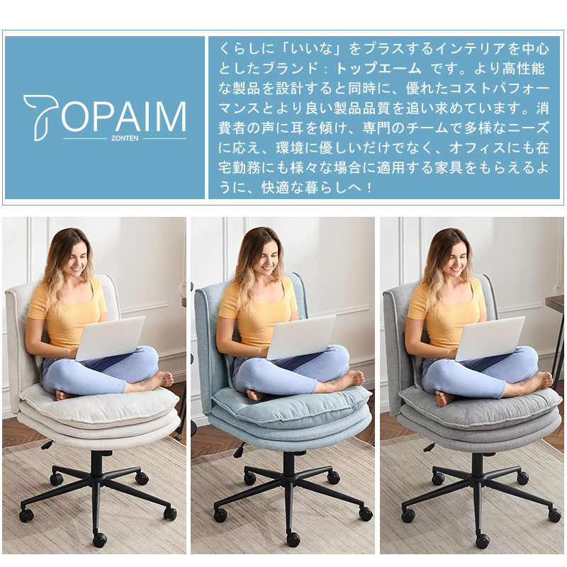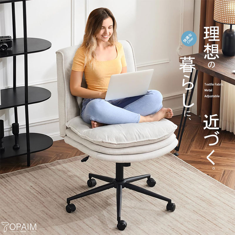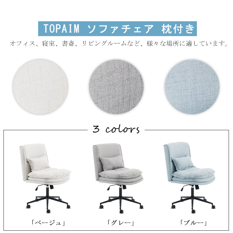 TOPAIM あぐら椅子 デスクチェア ソファチェア リネン ロッキングチェア 枕付き 幅広座面 オフィスチェア 360°回転 105°~120°ロッキング角度 昇降