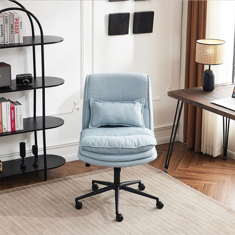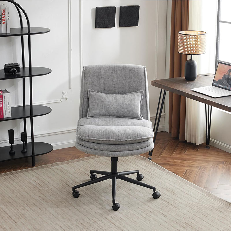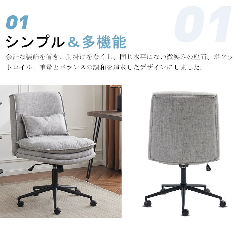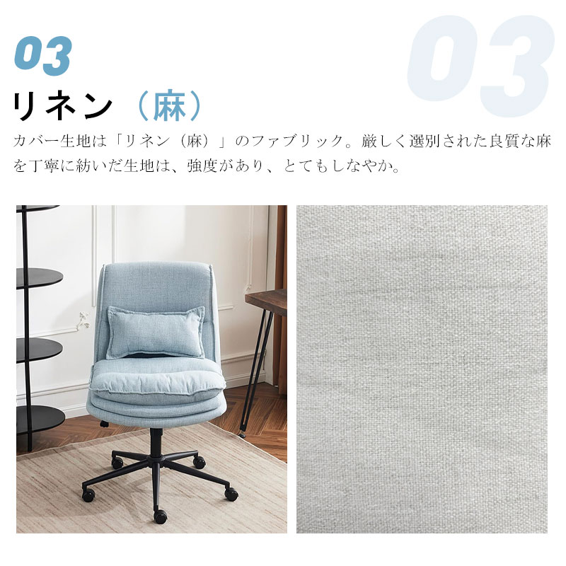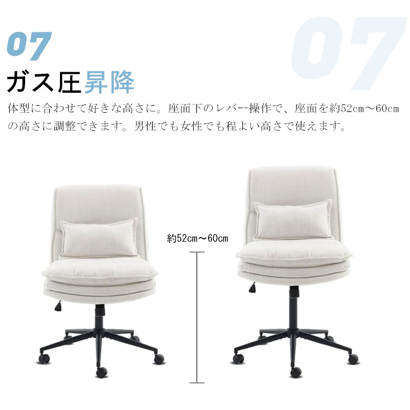 TOPAIM あぐら椅子 デスクチェア ソファチェア リネン ロッキングチェア 枕付き 幅広座面 オフィスチェア 360°回転 105°~120°ロッキング角度 昇降