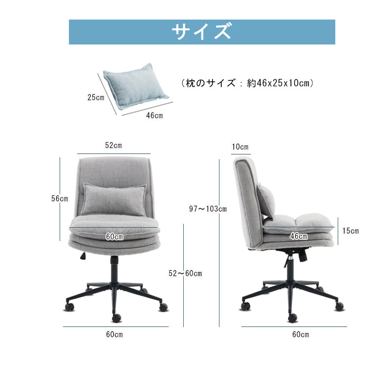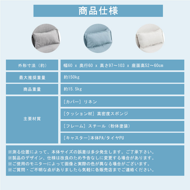 ●外形寸法(約):幅60 x 奥行60 x 高さ97〜103 x 座面高52〜60cm