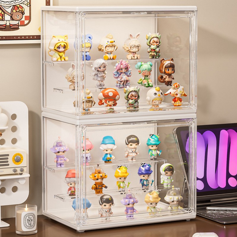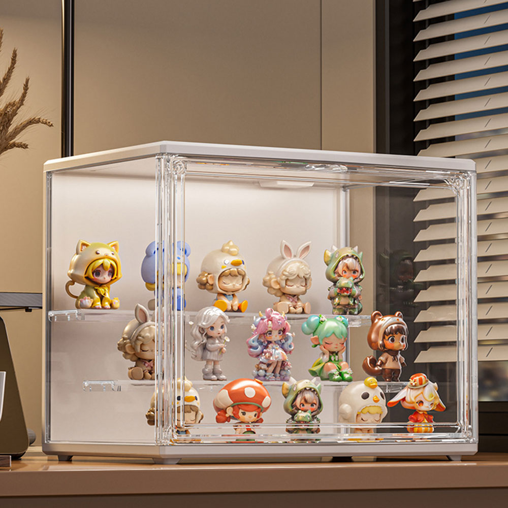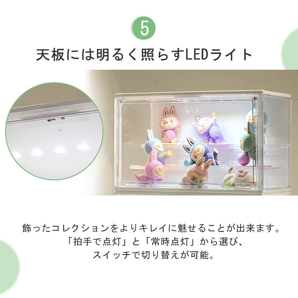 TOPAIM コレクションケース マグネット式 LEDライト 固定テープ付き クリア 扉付き 防塵保護 積み重ね可能 透明 フィギュア 卓上 アクリルスタンド