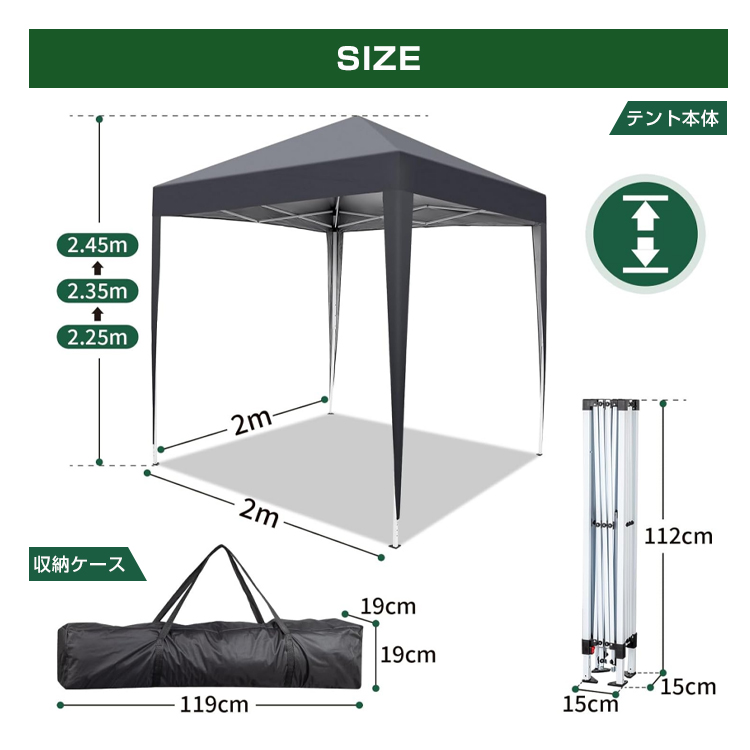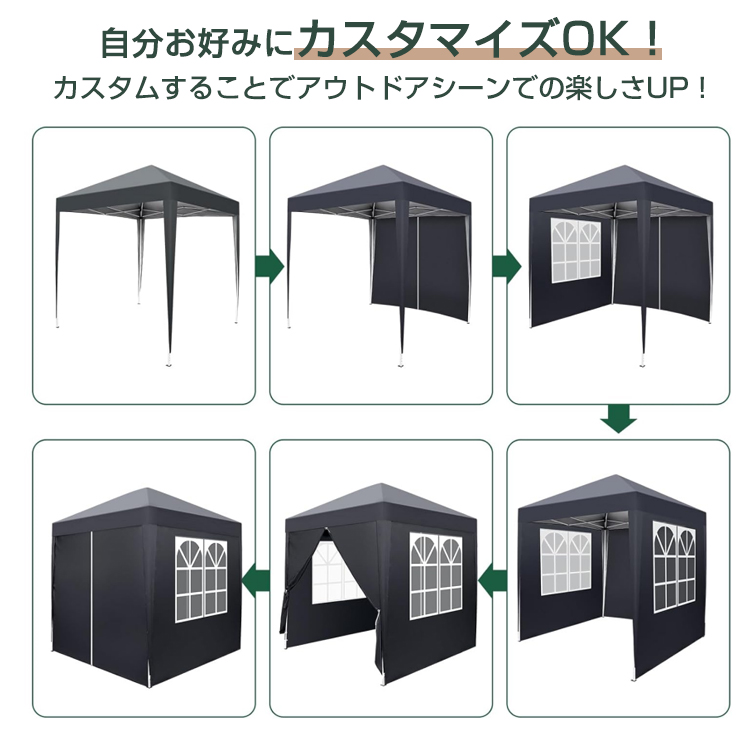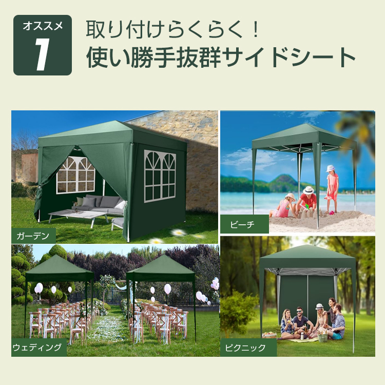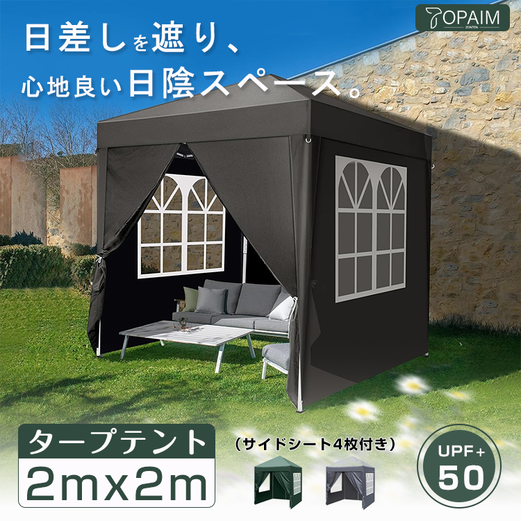 TOPAIM ワンタッチタープテント 2m×2m サイドシート 4枚 スチール 大型 耐水 タープ テント レジャー イベント 海 バーベキュー 運動会 防災グッズ 暑さ対策