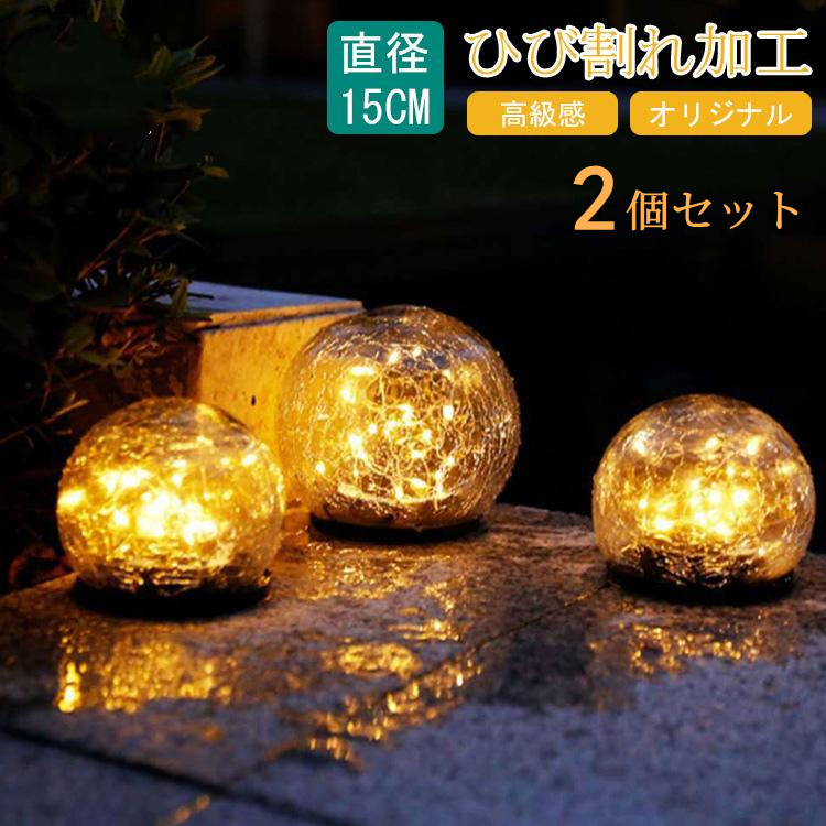 2個セット ソーラーライト LED ガーデンライト ひび割れ 直径15cm 屋外 防水 ledライト ガーデニング 埋め込み 置き型 おしゃれ 庭 芝生 玄関 照明 外灯
