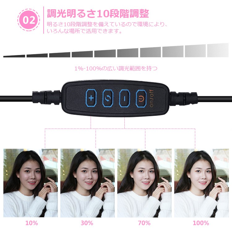 照明は10段階の明るさ調整ができます。シーンに合わせて簡単に3色のライトに切り替えられます。適切な照明に囲まれたより豊かな色でより良い写真やビデオを実現できます。